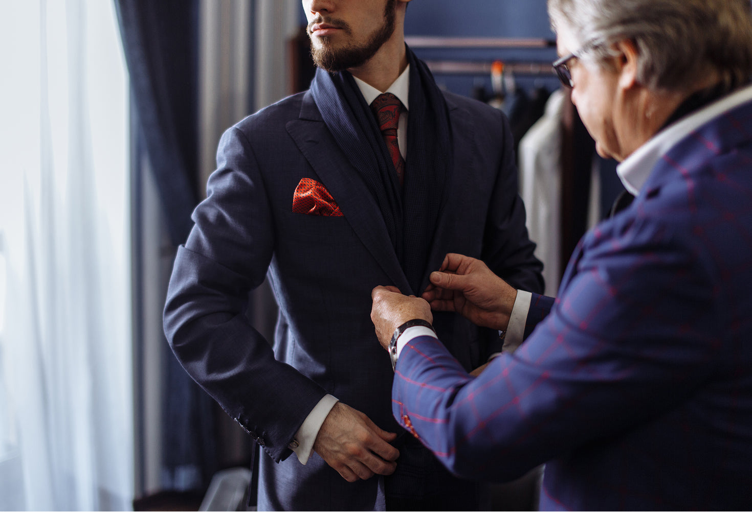 Accessories are the perfect finishing touch to jazz up your bespoke suit in Dubai, adding a personal flair and sophistication to your overall look. From classic ties and pocket squares to cufflinks and belts, the right accessories can transform a suit into a statement. Whether you're aiming for a bold, modern style or a timeless, elegant feel, these carefully chosen details bring your unique personality into focus. Our expert stylists are here to help you select accessories that complement your suit’s fabric, cut, and your personal style, ensuring you look polished, confident, and impeccably put together.