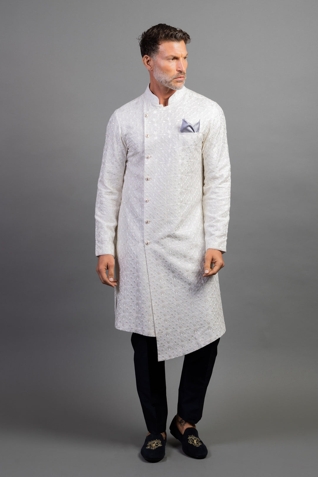 With exquisite embroidery, luxurious fabrics, and precise tailoring, we craft a wedding outfit that is as unique as your love story. Our team works closely with you to understand your vision, and we incorporate unique elements like custom monograms, family heirlooms, or meaningful symbols into the embroidery. Every thread is woven with intention, creating a garment that tells your story and reflects your heritage.