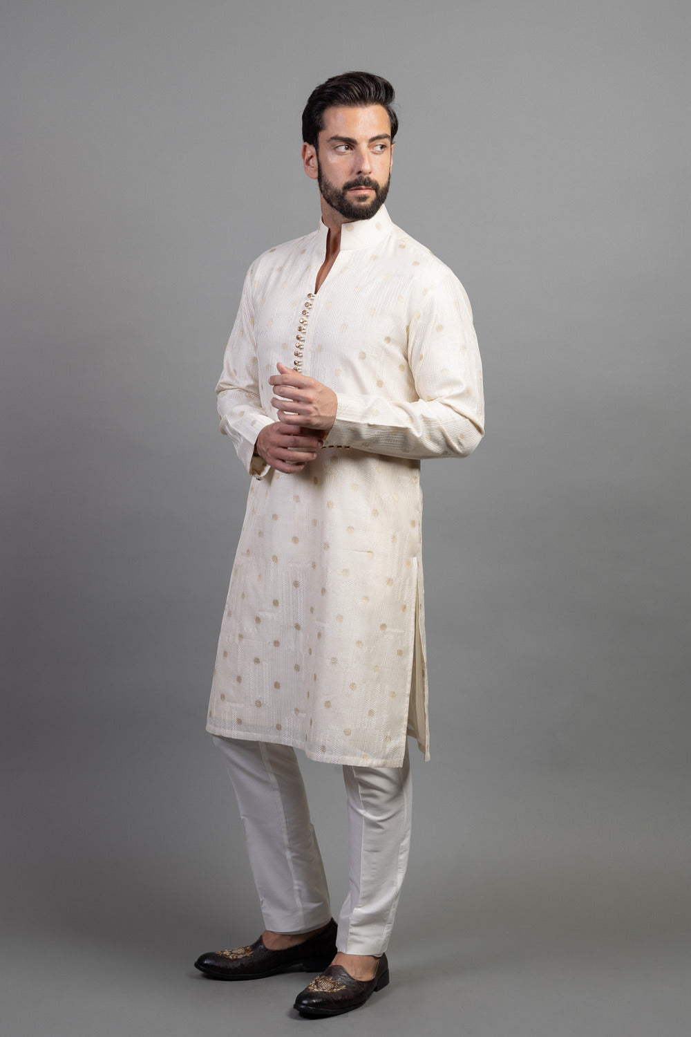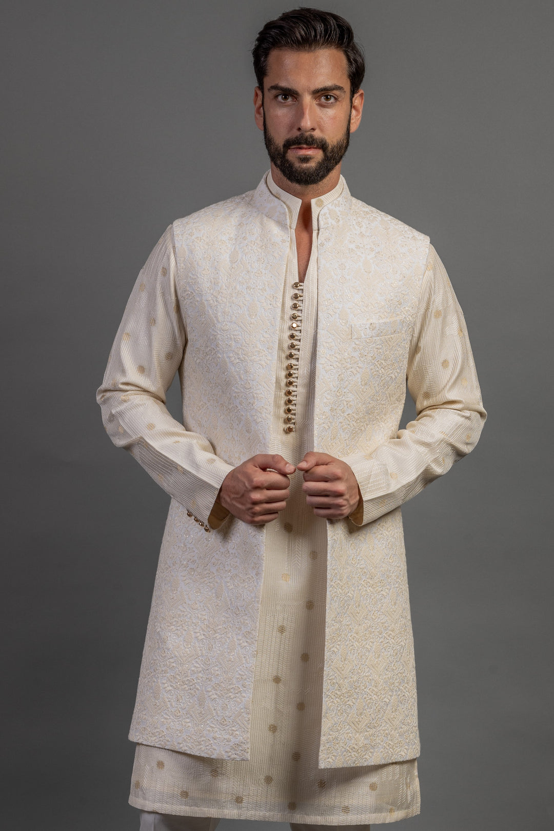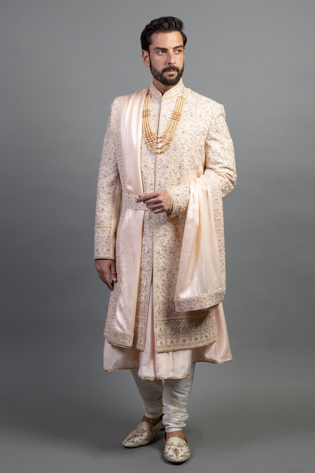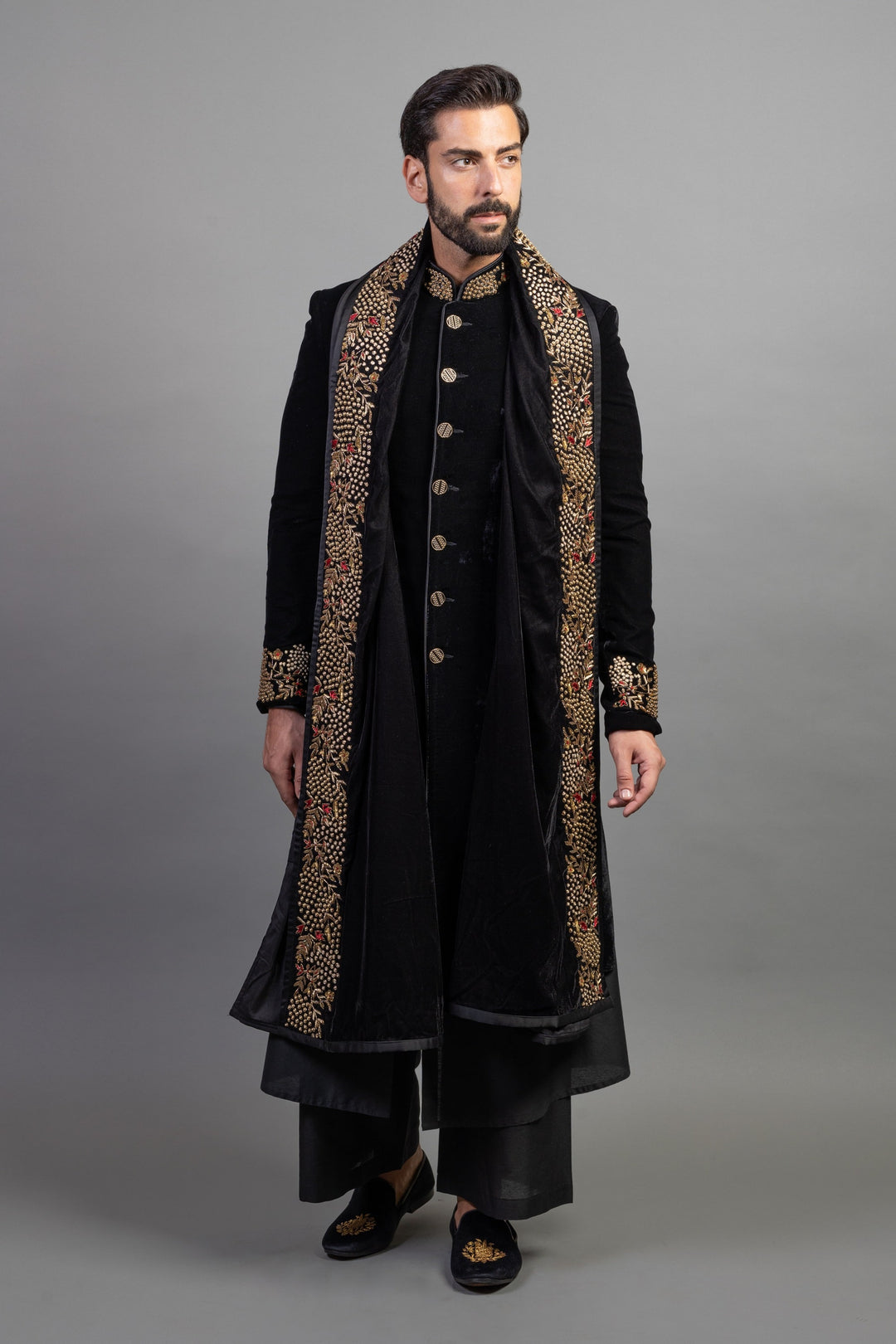 With exquisite embroidery, luxurious fabrics, and precise tailoring, we craft a wedding outfit that is as unique as your love story. Our team works closely with you to understand your vision, and we incorporate unique elements like custom monograms, family heirlooms, or meaningful symbols into the embroidery. Every thread is woven with intention, creating a garment that tells your story and reflects your heritage.